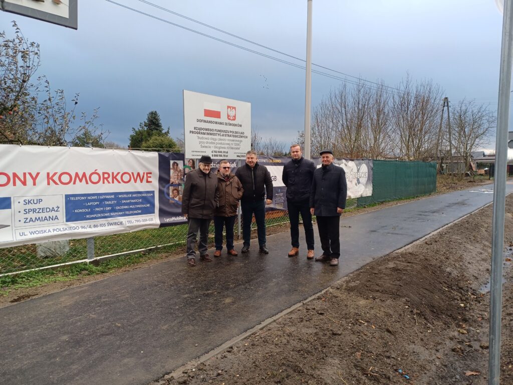 Powiat Świecki zakończył realizację projektu pn. „Budowa ciągu pieszo – rowerowego przy drodze powiatowej nr 1289C Świecie – Głogówko Królewskie” dofinansowanego w ramach Rządowego Funduszu Polski Ład: Program Inwestycji Strategicznych.