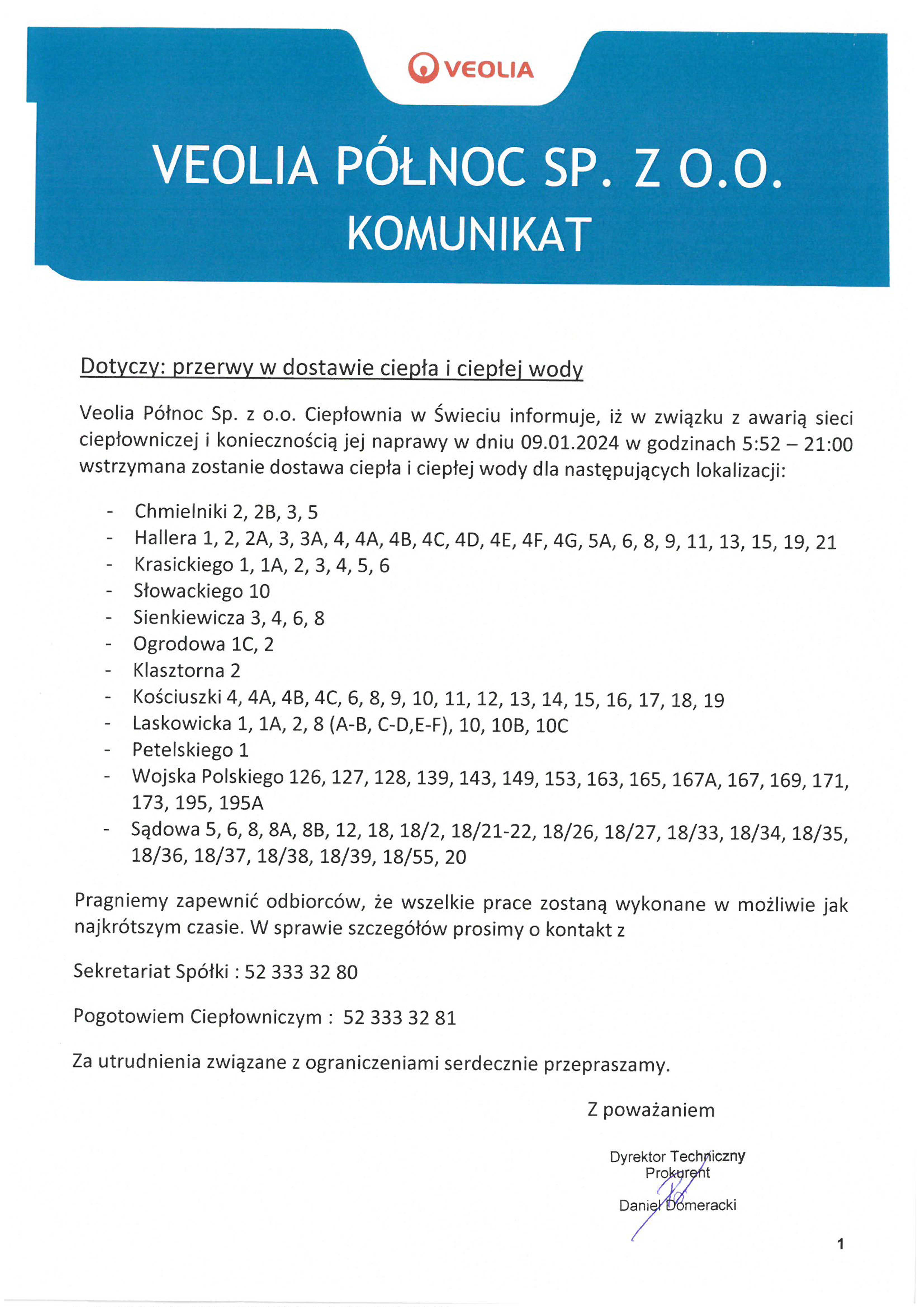 Strona główna Aktualności UWAGA! Awaria sieci ciepłowniczej w Świeciu
