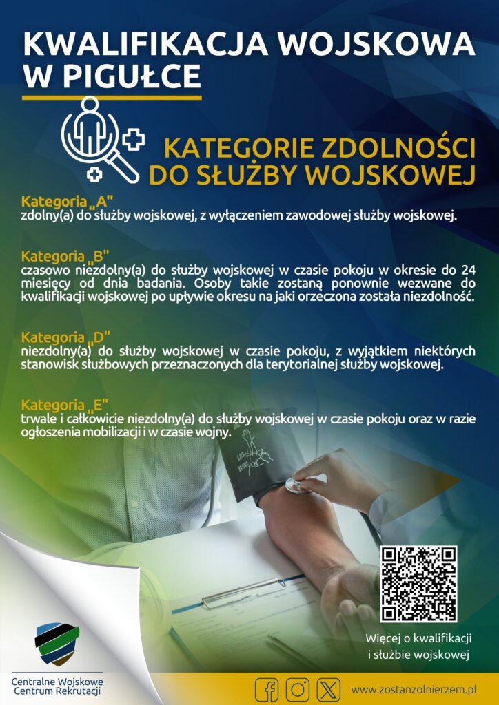 - kategoria A – zdolny do służby wojskowej, co oznacza zdolność do odbywania lub pełnienia określonego rodzaju służby wojskowej, o której mowa w art. 129, a także zdolność do odbywania służby zastępczej;