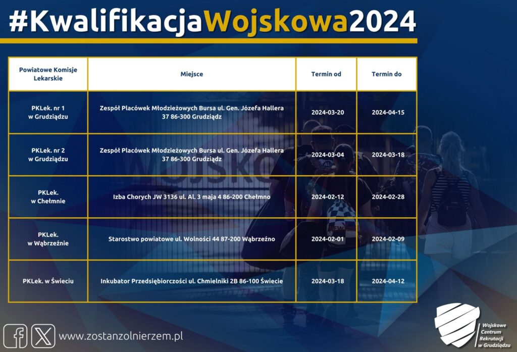 Wojskowe Centrum Rekrutacji w Grudziądzu przeprowadza Kwalifikację Wojskową na terenie administrowanym.