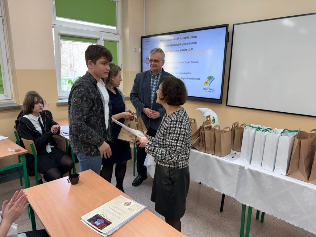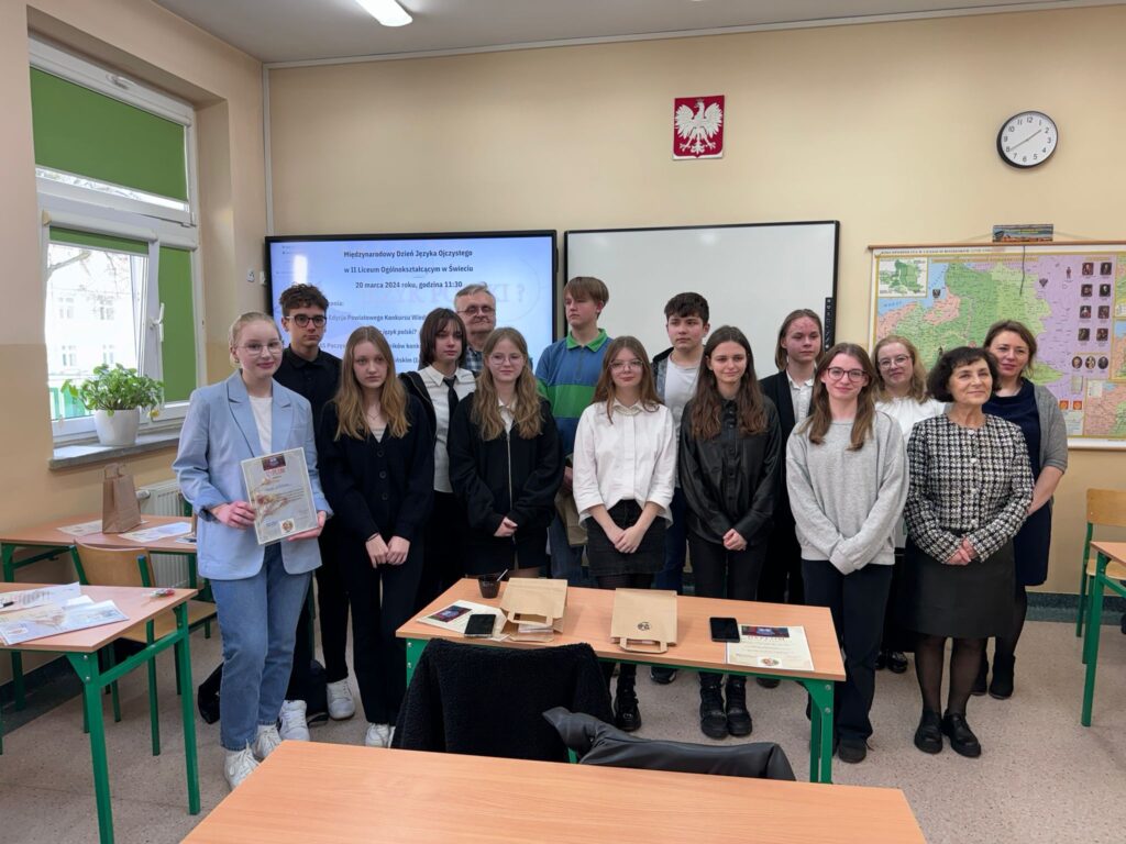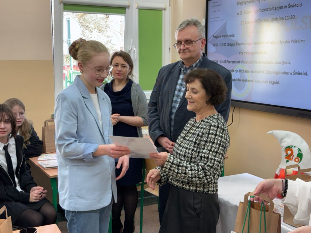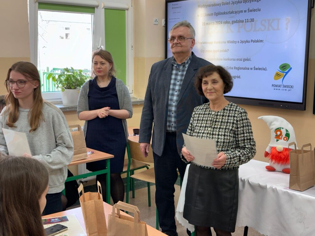 Dnia 20 marca 2024 r. o godz. 11:30 w II Liceum Ogólnokształcącym w Świeciu odbył się Międzynarodowy Dzień Języka Ojczystego, w którym uczestniczyła Starosta Barbara Studzińska. Podczas wydarzenia zostały  wręczone nagrody dla najlepszych uczestników konkursu.