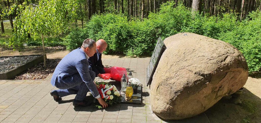 Starosta Świecki Paweł Knapik złożył kwiaty przy pomniku w Gminie Drzycim.