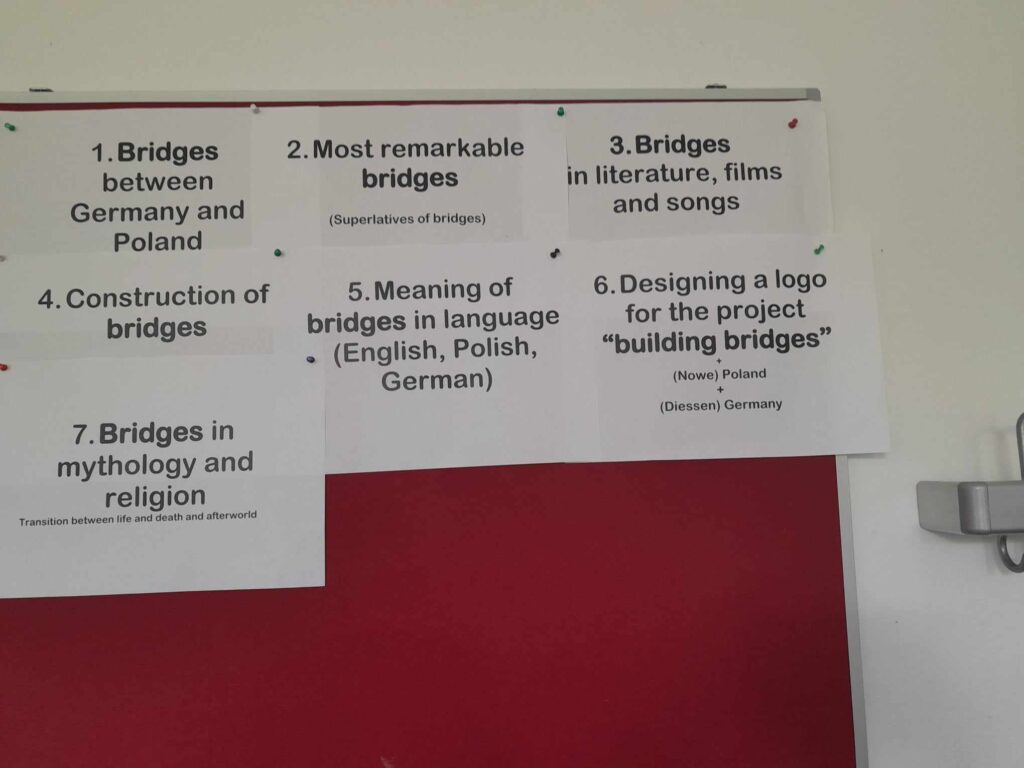 Uczniowie wspólnie pracowali nad projektem ,,Building bridges”. W ramach, którego rysowali mosty inspirowane znanymi mostami, tworzyli własne projekty mostów z makaronu. Oprócz pracy nad projektem uczniowie również zwiedzali przepiękną okolicę: najważniejsze zabytki Monachium i zamek Neuschwanstein oraz most Marienbrucke.