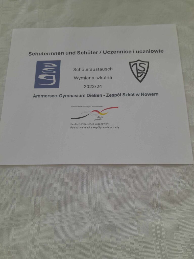 Uczniowie Zespołu Szkół w Nowem, w dniach od 13 do 19 kwietnia 2024 roku uczestniczyli w wymianie młodzieży z uczniami Ammersee-Gymnasium w Dissen.