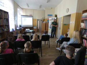 W bibliotece przeprowadzono zajęcia przyrodnicze dla dzieci z Niepublicznego Językowego Przedszkola Baśniowy Dworek, które poprowadziła Pani Ewelina Szumigaj z Zespołu Parków Krajobrazowych nad Dolną Wisłą. Tematem spotkania były ślady obecności zwierząt. Najmłodsi poznali wiele ciekawostek związanych z dziką przyrodą oraz wykonywali prace plastyczne. Uzupełnieniem zajęć była wystawa książek przyrodniczych.