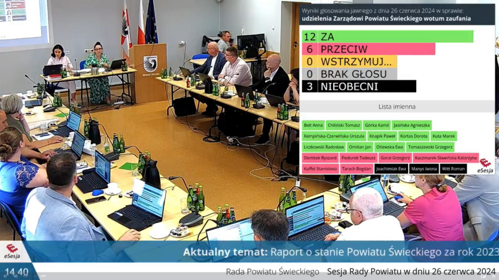 Wotum zaufania było efektem przedstawienia radnym i przyjęcia przez nich Raportu o stanie Powiatu Świeckiego za rok 2023.