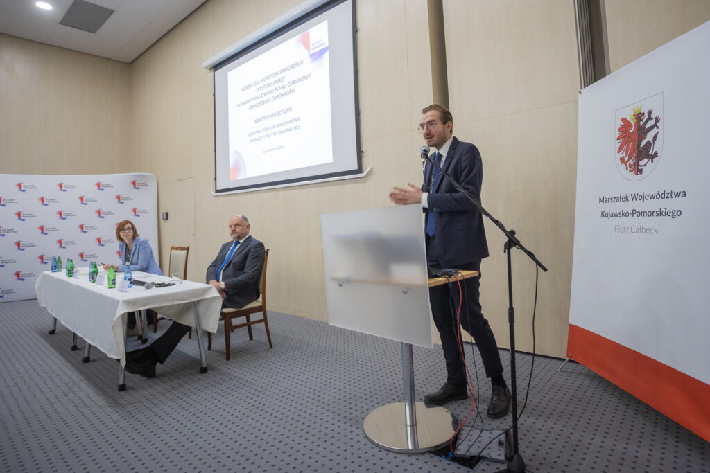 Wicestarosta Roman Witt w środę (25 września) wziął udział w spotkaniu z Janem Szyszko, sekretarzem stanu w Ministerstwie Funduszy i Polityki Regionalnej. Tematem zebrania w Urzędzie Marszałkowskim Województwa Kujawsko-Pomorskiego były nabory dla jednostek samorządu terytorialnego w ramach Krajowego Planu Odbudowy i Zwiększania Odporności (KPO).