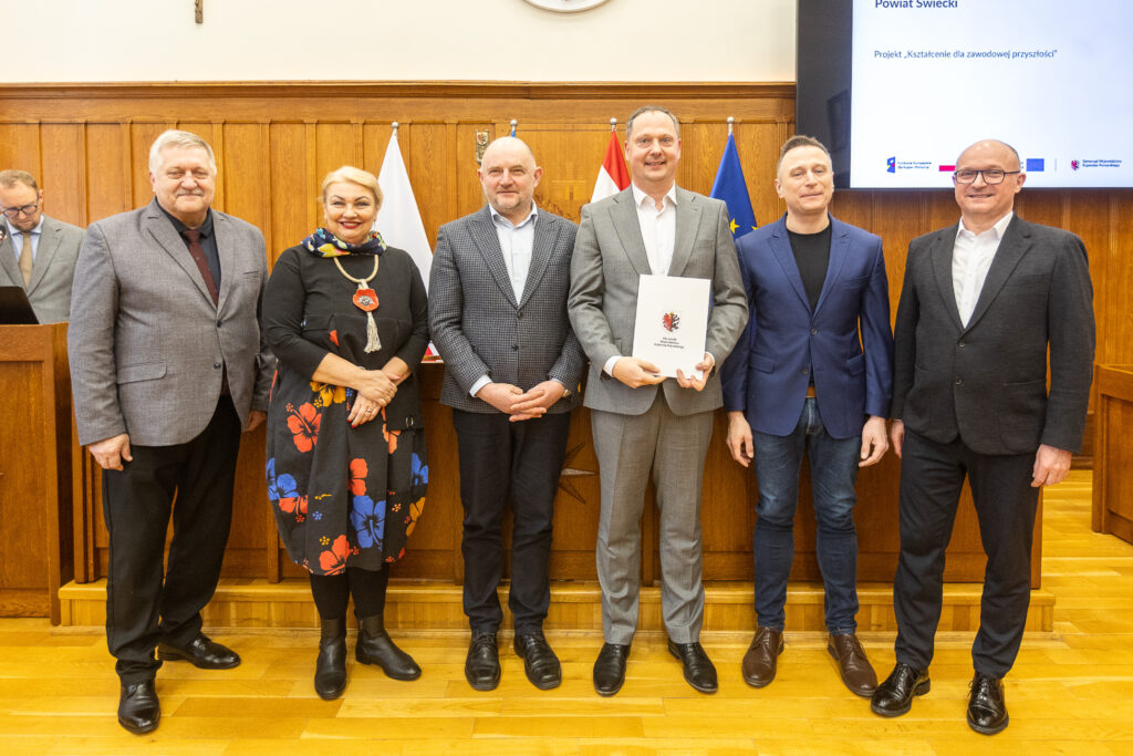 Powiatu Świeckiego otrzymał 999 789,09 zł zł dofinansowania w ramach programu regionalnego Fundusze Europejskie dla Kujaw i Pomorza 2021-2027 na projekt „Kształcenie dla zawodowej przyszłości”.