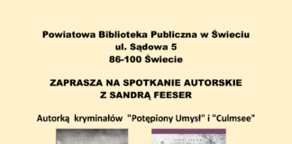 Powiatowa Biblioteka Publiczna w Świeciu zaprasza na spotkanie autorskie z cyklu „O książkach przy kawie” z Sandrą Feeser - Autorką kryminałów "Potępiony Umysł" i...