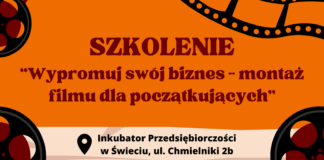 Dnia 09.04.2024 r. o godz. 10:00 w Inkubatorze Przedsiębiorczości w Świeciu, ul. Chmielniki 2b odbędzie się bezpłatne szkolenie “Wypromuj swój biznes - montaż filmu...