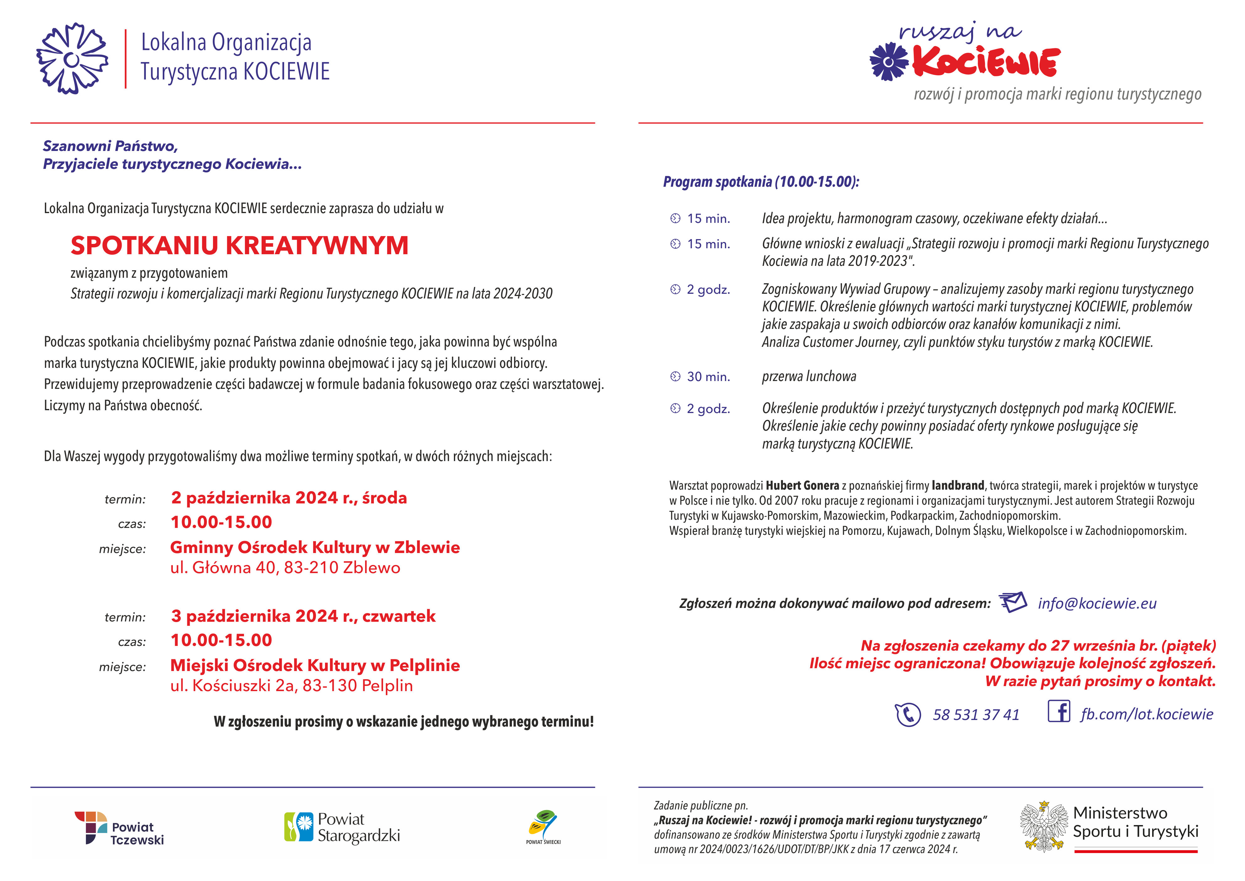Zgłoszeń można dokonywać mailowo pod adresem: info@kociewie.eu. Na